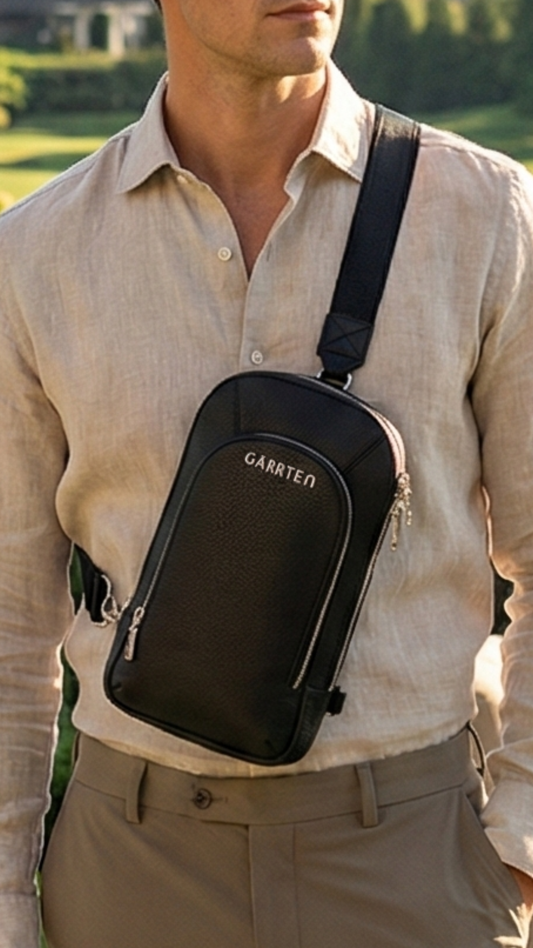 Everything in its place — no digging, no fuss. Features include a main compartment, zip and open pockets, card slots, and a sleek exterior zip pocket. All your essentials stay neatly in reach, however you wear it.