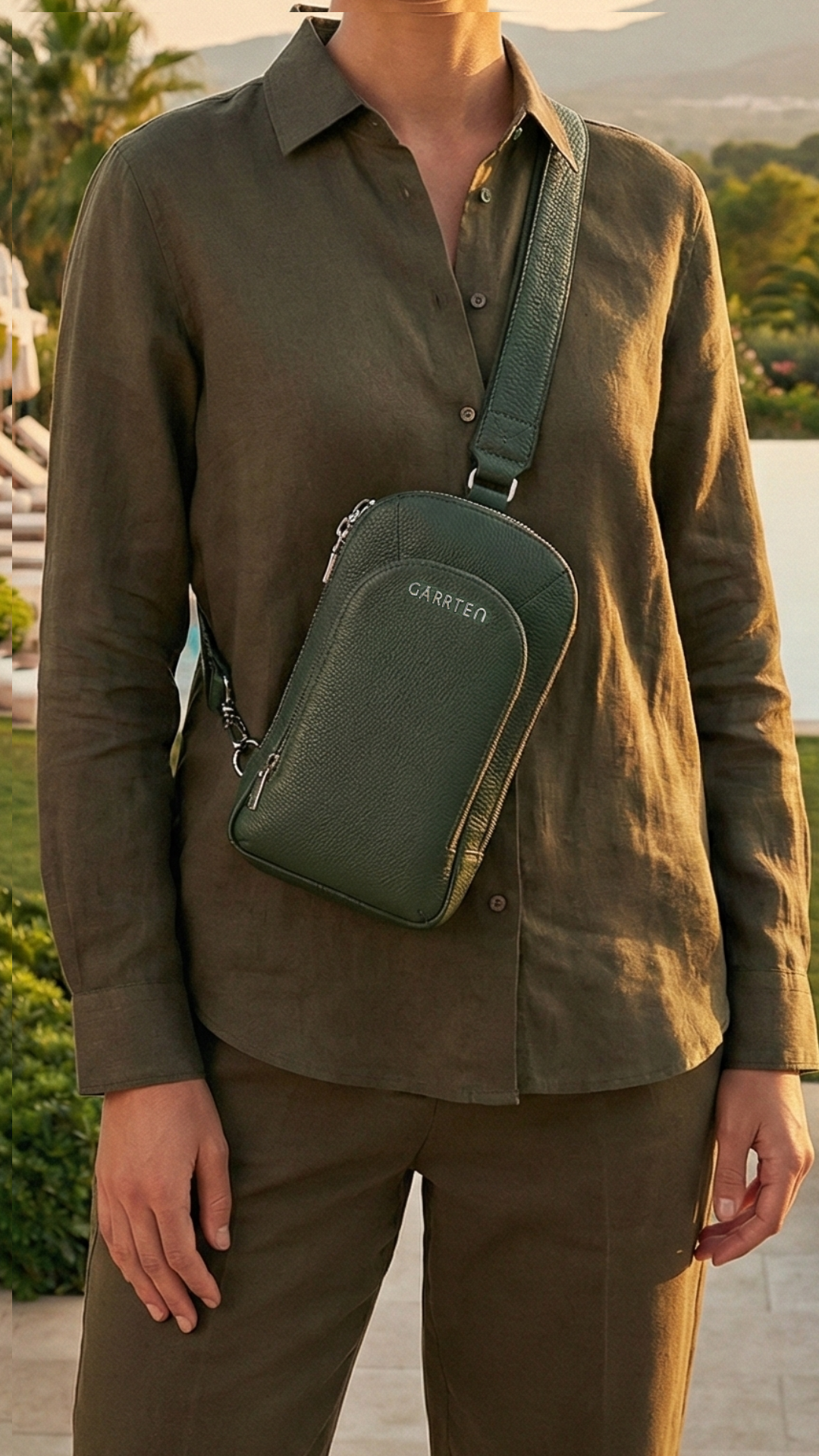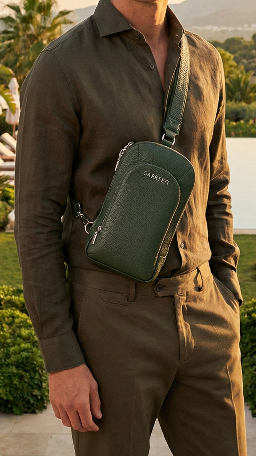 518 Leather Crossbody Sling Bag - Forest Green